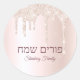 Sticker Rond Hébreu Happy Purim Custom Rose Parties scintillant