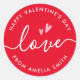 Sticker Rond Heureuse Sainte-Valentin élégant script et nom rou