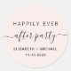 Un autocollant moderne rose pâle pour votre réception de mariage ou d'invitations de fête, faveurs et correspondance avec "Happily Ever After Party" dans un mélange de typographie simple et de script tendance avec des swashes, vos noms et date.