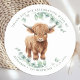 Sticker Rond Highland Cow Greenery Agritourisme Animaux Anniver