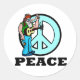 Hippie tenant une guitare avec un signe de paix dans l'arrière - plan.