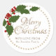 Sticker Rond Holly and Berries Personalized Merry Christmas
