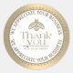 Montrez à vos clients que vous appréciez leur entreprise avec cet autocollant professionnel à l'abeille en relief. "MERCI" est écrit dans un texte de dégradé d'or sophistiqué et le texte est entouré d'une bordure dorée accrocheuse.
