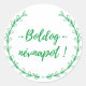 Boldog nevnapot ! - Hongrois Nom Day souhaite dans les polices de caractères élégantes. Design de typographie amusant en vert et blanc. Vous pouvez modifier les deux couleurs maintenant. Autocollant rond imprimé avec feuilles graphiques par Alma Wad.