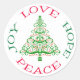 Voici un joli autocollant pour une utilisation polyvalente pendant la saison des Fêtes. Il est décoré d'une image rouge et verte d'un sapin de Noël au milieu. L'arbre est encerclé par le texte Love Hope Peace Joy en rouge et vert.