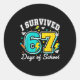 Sticker Rond I Survived 67 Days Of School Funny 67 Teachers Stu