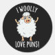 Sticker Rond I Wooly Love Puns Funny Sheep Pun Dark BG