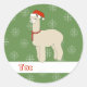 Sticker Rond illusima Llama Noël Snowflakes Vert