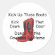 Ramasse Ces Bottes, Coupe Cette Porte, Danse Jusqu'à ce que les Cowboys rentrent chez eux. Obtenez le slogan pour chaque type ou fille qui portait des bottes de campagne, écoutait de la musique country, prenait un verre dans un bar de campagne, ou dansait une danse de ligne. Pour tous ces cowgirls et cowboys.