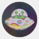 Dans cette amusante illustration de science-fiction de Richard H. Fay, des aliens verts super roulent dans une soucoupe volante ornée de fleurs, de coeurs, d'une étoile et d'un arc-en-ciel.