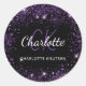 Sticker Rond Initiales de nom en poussière de paillettes violet