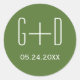 Sticker Rond Initiales simples et élégantes mariage vert