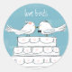 Baiser mignon d'oiseaux sur le gâteau de mariage à gradins blanc. Un couple doux de nouveaux mariés. Le texte "inséparables" peut être personnalisé. Un autocollant adorable qui peut être employé pour sceller le dos du mariage vous remercient note, des invitations nuptiales de douche ou sauve les cartes de date. Ces autocollants ronds font partie d'une collection de produits orientés de mariage d'oiseau mignon par le monde du griffonnage de Jenn.