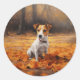 Sticker Rond Jack Russell à l'automne Feuilles automne Inspire