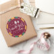 Sticker rond classique de Noël Joyeux Joyeux Joyeux Joyeux Jacquard Jaune Orange Jaune. Le design a une citation de Noël "C'EST LE TEMPS LE PLUS MERVEILLEUX DE L'ANNÉE" écrit en jolies polices sur un arrière - plan de Jacquard vert orange jaune. Pour toute personnalisation supplémentaire, n'hésitez pas à me contacter à l'adresse mypaperlove2021@gmail.com