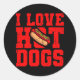 Sticker Rond J'ADORE CHAUD CHIENS CHAUDS CHIENS Hot Dog Manger