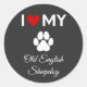 Sticker Rond J'aime mon Old English Sheepdog texte personnalisé