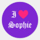 Un design de coeur "I Love Sophie" avec une police de style calligraphie. Ce produit peut être trouvé avec des coeurs roses ou rouges avec cette police de style. Si vous n'avez pas trouvé le nom ou l'endroit que vous cherchez, les modèles peuvent facilement être changés pour créer votre propre cadeau.