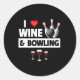 Sticker Rond J'Aime Vin Et Bowling Byll Pins Bowler Grève Dr.
