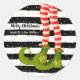 Les jambes des elfes en collants rayés et les bottes vertes sur rayures noires et blanches et points d'or comprennent votre salutation personnelle sur ces autocollants ronds de Noël. CORRESPONDRE des articles dans notre magasin.