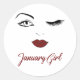 Sticker Rond Janvier Fille Yeux mignonnes lèvres rouges Wink An