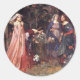 Peinture d'inspiration Renaissance de personnes dans le jardin avec fontaine. Centre de pièce dans une jeune fille dans un manteau. Art vintage de John William Waterhouse. Domaine public.