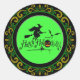 Sticker Rond Jaune Vert Joyeux Halloween sorcière et chauves-so