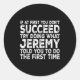 Sticker Rond Jeremy - If At First You Don't Succeed Try Doing W