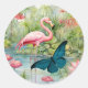 Sticker Rond Joli Flamant rose et enveloppes papillon