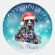 Sticker Rond Joli Noël Souhaitez Joyeuses Vacances Chien Animau