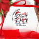Créez des autocollants de Noël personnalisés et élégants pour les sceaux d'enveloppe, les faveurs ou les emballages cadeaux avec un design qui dit "Joyeux Noël" et présente des pingouins joyeux en tenue rouge patinant sur glace. Le modèle facilite la saisie du nom de votre famille dans une police script décontractée.