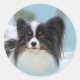 Sticker Rond Jouet Papillon mignonne Chien espagnol à l'quai