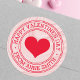Autocollants de la Saint-Valentin avec une texture de tourbillons d'agate en satin rose clair doux, cœur rouge et texte "Joyeuse Saint-Valentin" avec nom personnalisé. Utiliser comme sceaux d'enveloppe, autocollants pour cadeaux et faveurs, emballage de produits, artisanat et scrapbooking, etc.