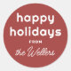 Ajoutez une touche rétro à vos cadeaux et cartes de vacances avec cet autocollant rond "Joyeux Vacances". Doté d'une police sanserif moderne, le design est personnalisé avec votre nom de famille manuscrit. Parfaits pour sceller des enveloppes, décorer des cadeaux ou ajouter une touche personnelle à tout objet de vacances, ces autocollants apportent un charme simple mais sophistiqué à vos célébrations de Noël. Découvrez la collection pour les articles correspondants, ou parcourez notre magasin pour des modèles d'autocollants de Noël plus uniques.