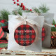 Magnifique étiquette de vacances qui peut être utilisée comme un SCELLÉ D'ENVELOPPE en ajoutant votre adresse ou comme une ÉTIQUETTE CADEAU en ajoutant votre nom de famille et en dessous, les noms des membres de la famille ou tout message de Noël que vous souhaitez. Motif à carreaux rouge et noir de style Buffalo plaid avec la phrase "Joyeuses Fêtes" utilisant une typographie manuscrite moderne. Collection avec des doublures d'enveloppe, des cartes de vacances, des invitations de fête de fin d'année, des cadeaux et plus encore disponibles.