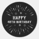 Sticker Rond Joyeux 40e anniversaire feux d'artifice noir blanc