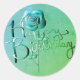 Sticker Rond "Joyeux anniversaire !" Rose 3D vert écrit à la ma