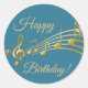 Sticker Rond Joyeux Anniversaire turquoise bleu vert notes de m
