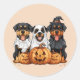 Sticker Rond Joyeux chien Rottweiler Halloween Jack-o'-lantern