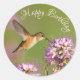 Sticker Rond Joyeux Fleurs sauvages de colibri d'anniversaire