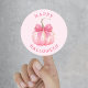 Sticker Rond Joyeux Halloween Ruban Coquette Rose Citrouille