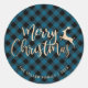 Sticker Rond Joyeux Joyeux Noël Or Noir & Bleu Plaid