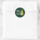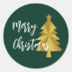 Sticker Rond Joyeux Noël Arbre vert Or et blanc Script