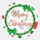Sticker Rond Joyeux Noël blanc, Pois verts rouges