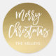 Sticker Rond Joyeux Noël Brush Script Or Personnalisé