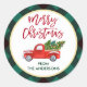 Sticker Rond Joyeux Noël Camion Green Plaid Check
