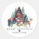 Sticker Rond Joyeux Noël | Forêt Cabine d'hiver rustique