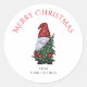 Sticker Rond Joyeux Noël Gnome Avec Parties scintillant Arbre d