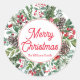 joyeux Noël hiver verdure calligraphie rouge Sticker rond classique