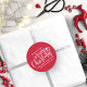 Joyeux Noël moderne Rouge blanc Script Classic Round Sticker